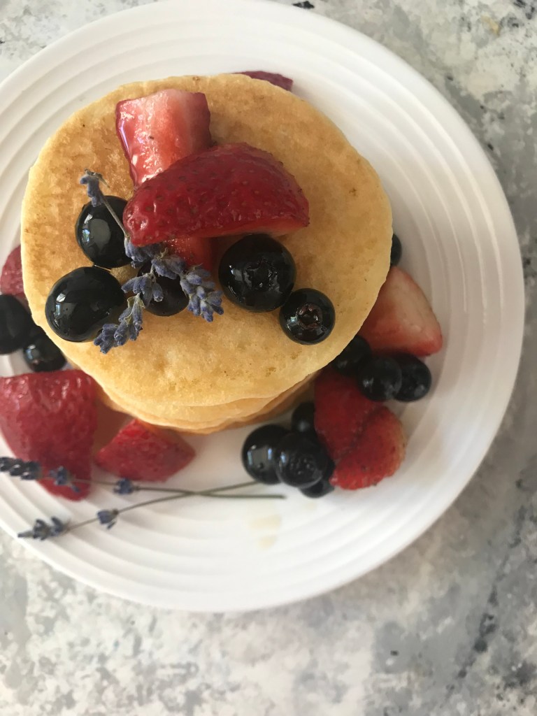 Step 5: Make pancakes and drizzle with the lavender syrup, followed by several spoonfuls of the sweet berries. Eat.