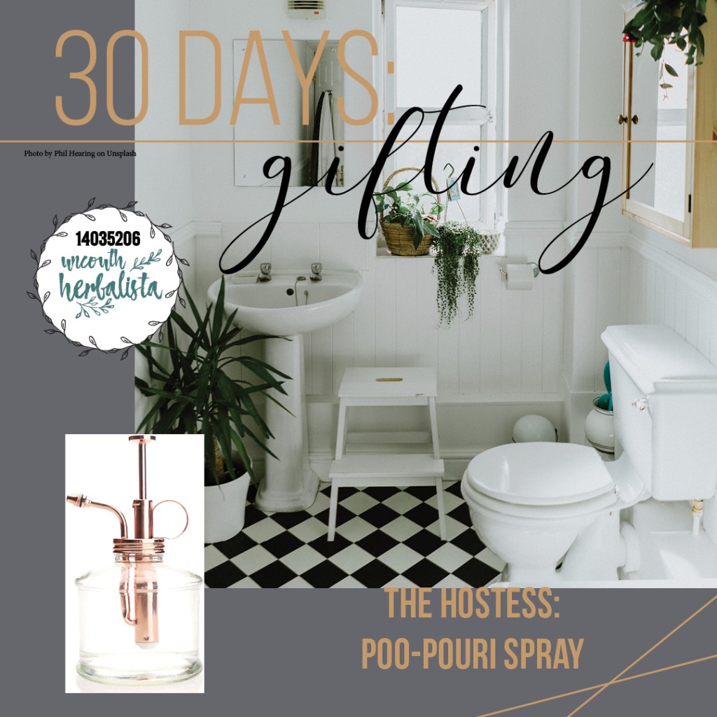 You could easily find a small glass spray or stainless steel bottle but I LOVE the one below. Yes, technically its a plant spritzer (could be very useful for those succulent gifts too!) but this one looks beautiful sitting out too. Unlike the cans of commercial chemical sprays, this one is all natural and is a sweet little bit of decor.