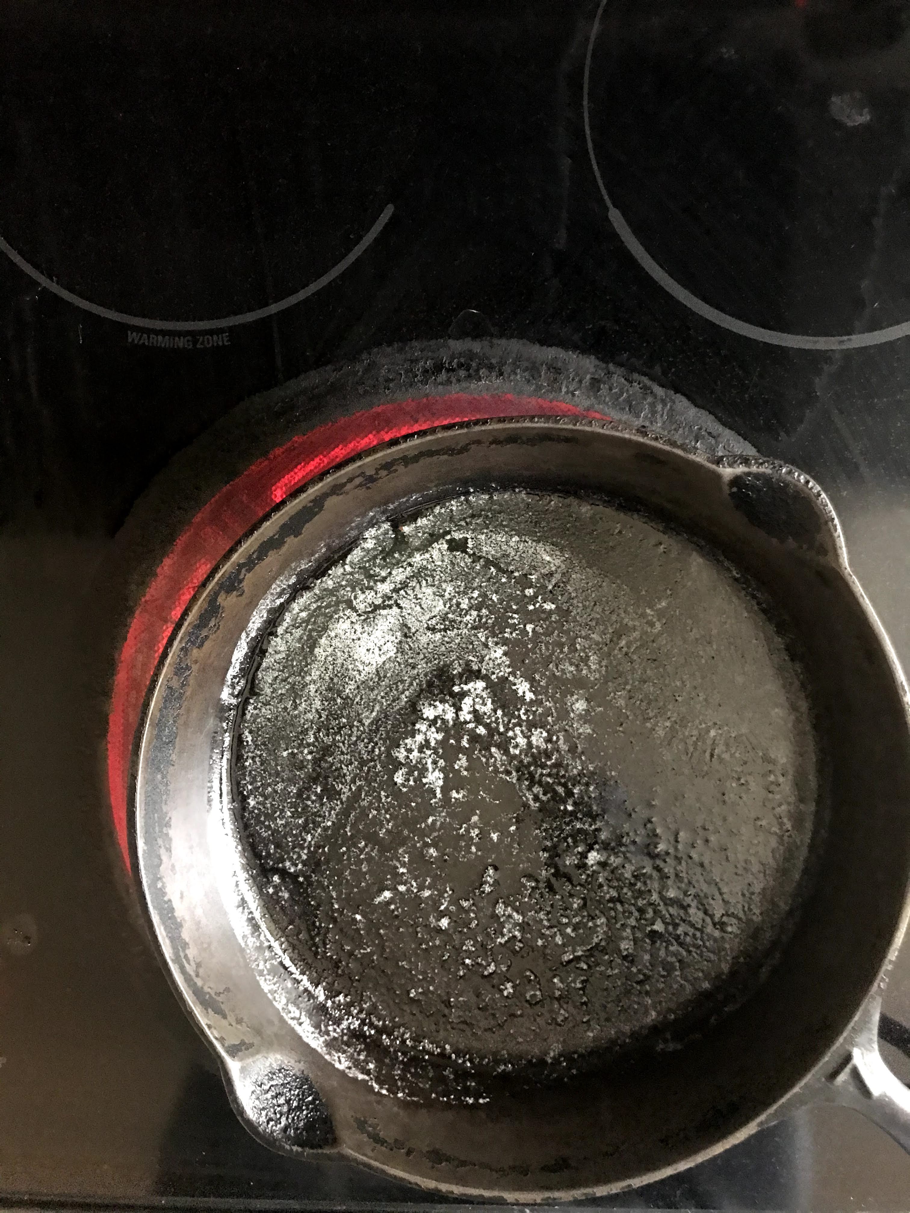 Oven @ 375 | utensils: 9″-10″ Cast iron skillet, medium mixing bowl, spatula or whisk