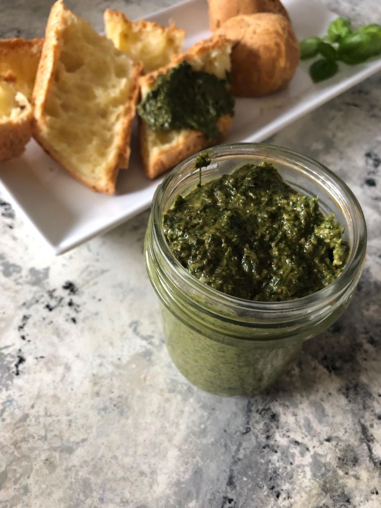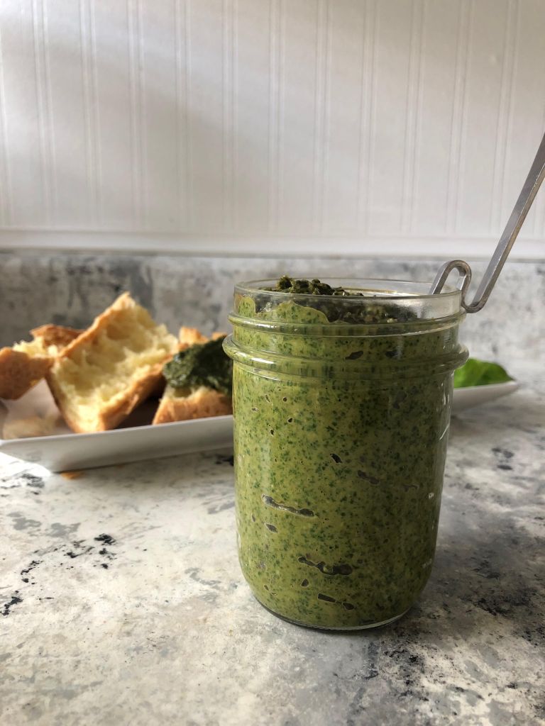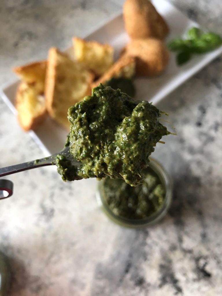 So, I mean, this pesto is just a delicious portion of a well rounded diet. Slathering it on french fries – though absolutely amazing – will not give you your daily dose of healthy food. But dang, that sounds great right now…