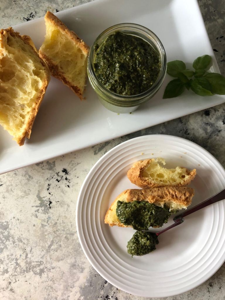 What’s in the “fancy pesto” anyway, you say? Radish greens. Much like the aforementioned kale, radish greens are full of vitamin C, vitamin B6, magnesium, phosphorus, iron, calcium, vitamin A, potassium and folic acid. Alllll that in some green prickly leaves. And though my admiration of basil reaches high, the blend of those two just makes it so much better. Plus [pause for dramatic effect] this pesto is Vegan. And Paleo. And frickin’ delicious. My teenage son wolfed down 4 slices of that baguette slathered with the stuff so yeah, it’s even teenage good.