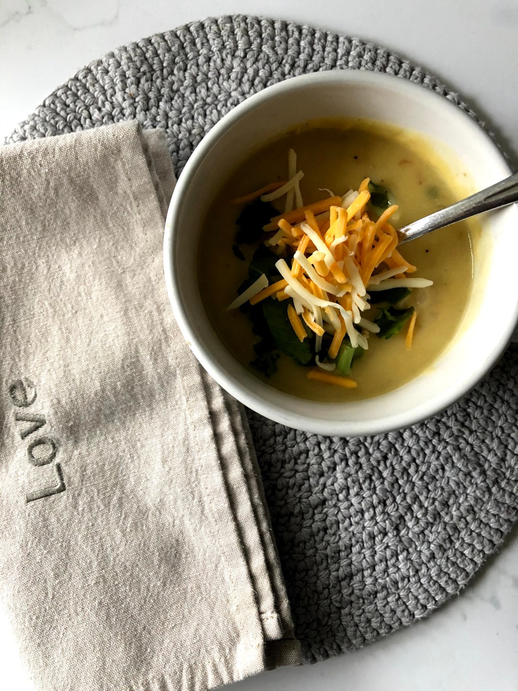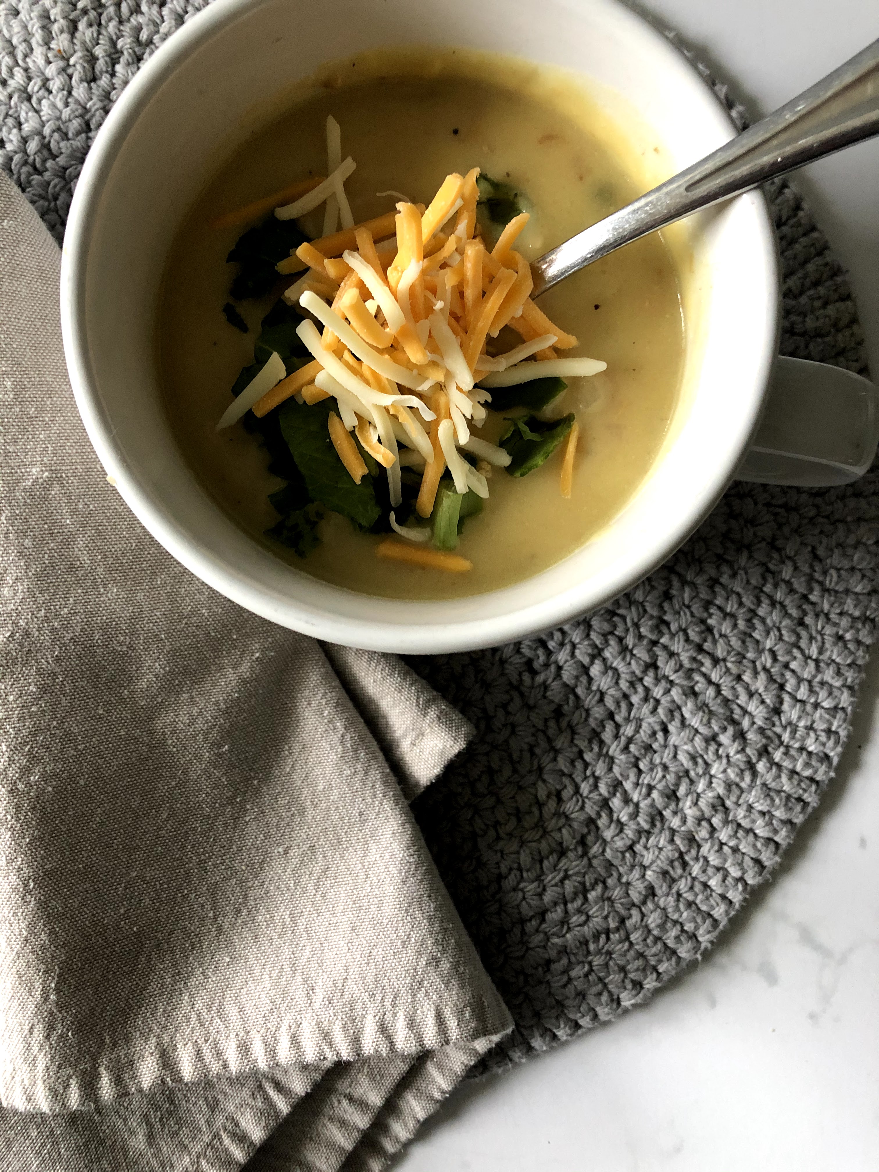 Vegan option: substitute cheese for favorite non-dairy blend and do not mix in at the end. Serve soup with vegan shreds on top as a garnish as reheated the non-dairy shredded cheese tends to separate.