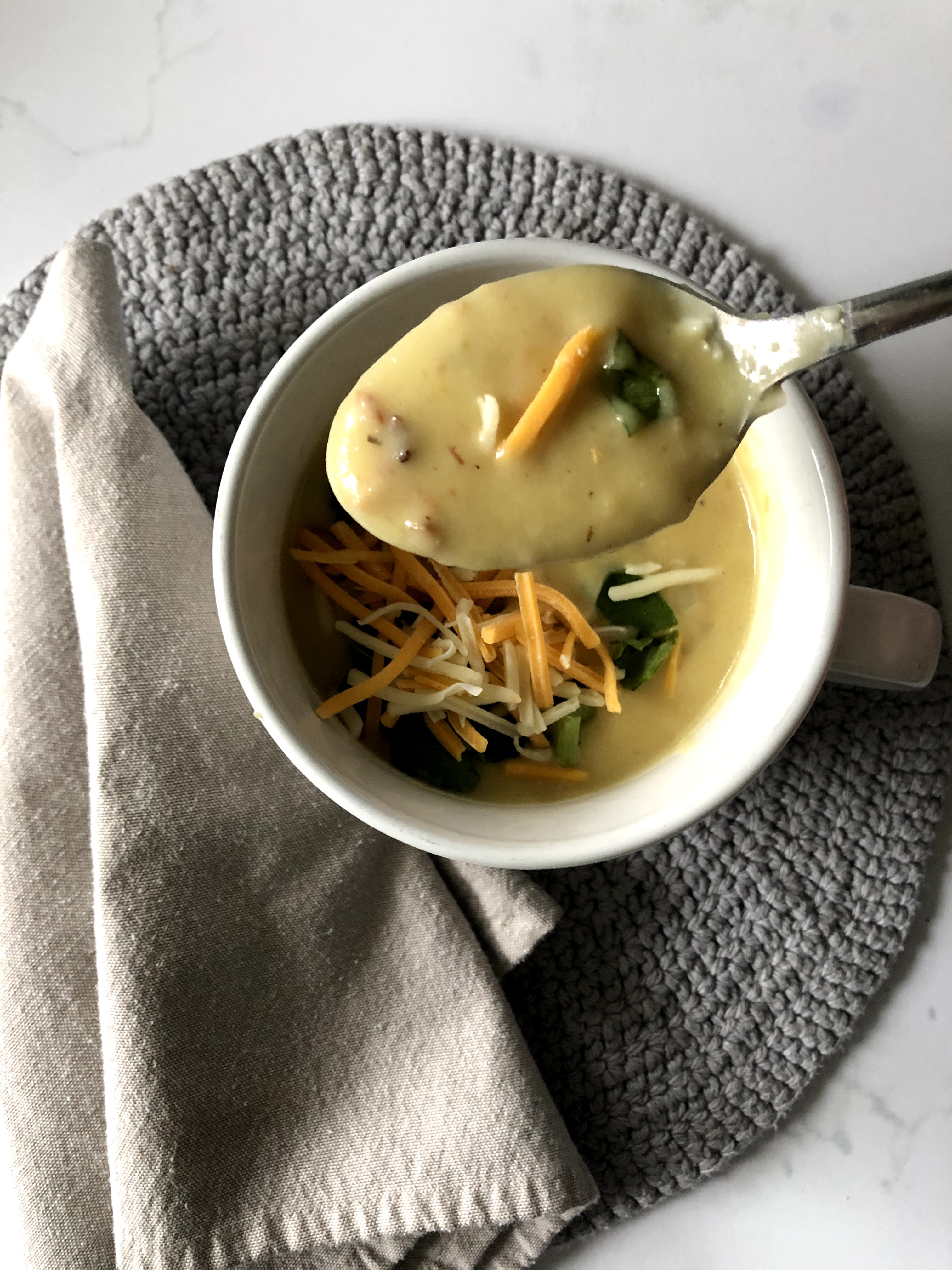Feel free to additional items to your liking such as chopped green onions, leftover meats like bacon or ham, or spice it up with some cayenne for an extra warming boost!